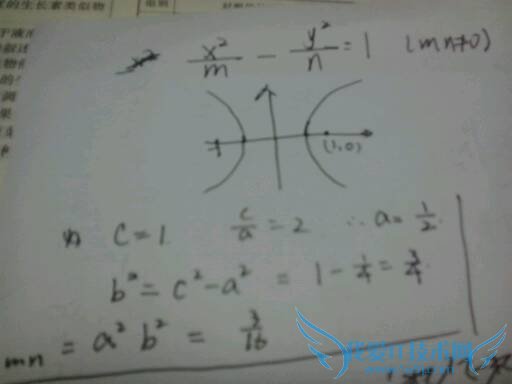 问题3:双曲线x2/m-y2/n=1(mn≠0)的离心率为2,有一个焦点坐标为(1,0),则mn的值为?[数学科目]