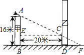 ②设点A的影子落到地面上某一点F,则在Rt△ABF中,∠AFB=30°,AB=16米,
