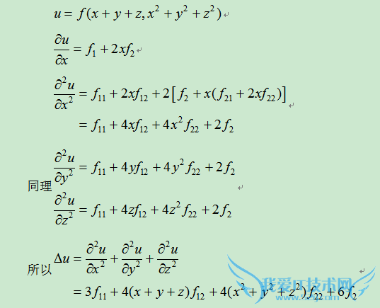 问题5:一道费解的高数问题 (多元函数,偏导数)设u=f(x+y+z,x^2+y^2+z^2),其中f有二阶连续偏导数,求Δu= ?平方u/ ?x平方+?平方u/ ?y平方+?平方u/ ?z平方?[数学科目]