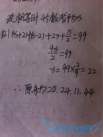 欢迎您访问52IJ教育培训网,今天小编为你分享的数学方面的学习知识是通过网络精心收集整理的:“把99拆成4个数_有4个数之和是99,第1个数加2,第2个数减2,第3个数乘2,...[数学]”,注意:所整理内容不代表本站观点,如你有补充或疑问请在正文下方的评论处发表。下面是详细内容。