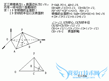 问题4:正三棱锥高为1,底面边长为2根号6,内有一球与四个面都相切求:1)求棱锥的全面积;2)求球的半径以及表面积[数学科目]