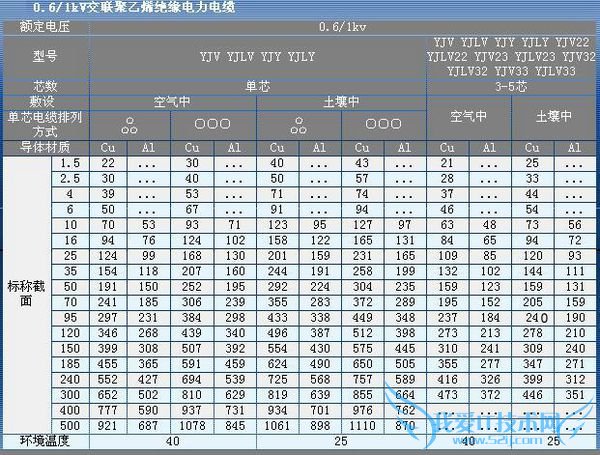 计算电缆载流量选择电缆(根据电流选择电缆):