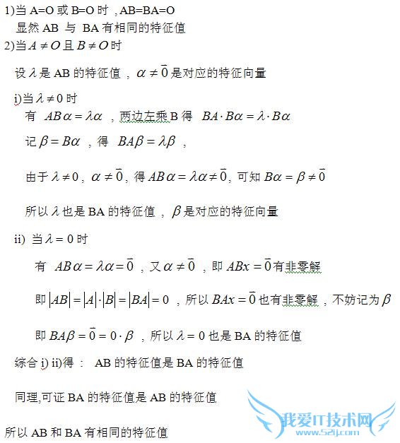 欢迎您访问52IJ教育培训网,今天小编为你分享的数学方面的学习知识是通过网络精心收集整理的:“n阶方阵_A,B是n阶方阵,求证:AB 与 BA有相同的特征值.[数学]”,注意:所整理内容不代表本站观点,如你有补充或疑问请在正文下方的评论处发表。下面是详细内容。