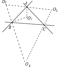 | 如图所示: (1)作出△ABC两内角的平分线,其交点为O 1 ; (2)分别作出△ABC两外角平分线,其交点分别为O 2 ,O 3 ,O 4 , 故满足条件的修建点有四处,即O 1 ,O 2 ,O 3 ,O 4 . 故填四处. 故填4. |