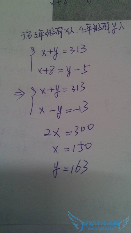 问题2:花园小学三,四年级一共有313人,如果三年级增加8人,四年级减少5人,那么两个年级的人数正好同样多,三,四年级原来各多少人?[数学科目]