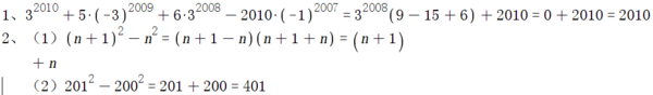 问题5:①3的2010次方+5*(-3)的2009次方+6*3的2008次方-2010*(-1)的2007次方.②2的二次方-1的二次方=2+1,3的二次方-2的二次方=3+2,4的二次方-3的二次方=4+3……(1)从以上等式中你能发现怎样的规律?(用[数学科目]