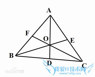 三角形ABC中,三角形AOB/三角形AOC=BF/FC;同理,三角形AOC/三角形COB=AD/DB;三角形BOC/三角形BOA=EC/AE.