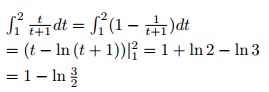 =∫(1,2)dt-∫(1,2)dt/(t+1)