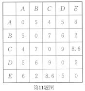 五个城市间进行,各城市之间的路线距离(单位:百公里)见右表. 若以
