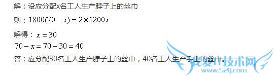 问题3:某车间70名工人承接了制作丝巾的任务.已知每人每天平均生产手上的丝巾1800条或脖子上的丝巾1200条,一条脖子上的丝巾要配两条手上的丝巾,为了使每天生产的丝巾刚好配套,应分配多少名工[数学科目]
