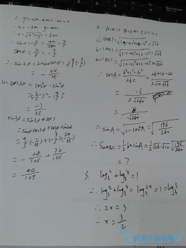 问题1:已知角a的终边上一点为P(-3m,4m),m>0(1)求sina ,sin2a的值 (2)求cosa2a,sin3a的值直角坐标系中的三点为A(4,1),B(3,4),C(-1,2),求△ABC的面积log3 2+log3 x=1,则x=_______.[数学科目]