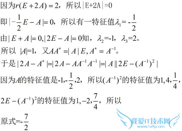 问题5:三阶矩阵A满足|E+A|=0,|2E-A|=0,r(E+2A)=2则|2A-A*|=[数学科目]
