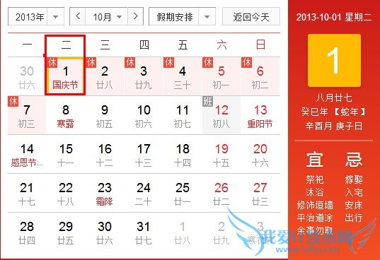 2013年的国庆节是2013年10月1日,星期二.