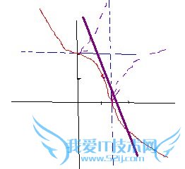 与图像相交正好有两个交点(1/4个椭圆一个 与下面的双曲线部分一个)