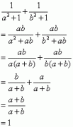 类别:数学 发布时间:16-04-17 点击:1974∵1a2+1+1b2+1=a2+b2+2a2b2+b2+a2+1,∴当a?b=1时a2b2=(ab)2=1∴原式=a2+b2+21+b2+a2+1=1.其他回答1步骤:将a=1/b代入式子中,即可得到结果其他类似问题问题1:已...