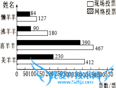 (1)根据统计表中的数据,绘制条形统计图如下:(2)请根据上图回答下面的问题.①从条形统计图中可以看出,现场投票时,喜羊羊谁的得票最多,得了467票,②使用网...