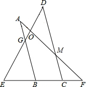 类别:数学 发布时间:16-04-26 点击:2038∠EOF=90°.过O作OM平行于AB交BC于M,OM∥AB,∠EOM=∠BGE,AB∥CD,∠A=∠FHC,∠D=∠BGE,AB∥OM,OM∥CD,∠FOM=∠FHC,因为∠A=∠F=∠FHC,∠F=∠FOM,∠D=∠E=∠BGE,∠E=∠...