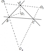 类别:数学 发布时间:16-04-26 点击:1946如图所示:(1)作出△ABC两内角的平分线,其交点为O1;(2)分别作出△ABC两外角平分线,其交点分别为O2,O3,O4,故满足条件的修建点有四处,即O1,O2,O3,O4.故...