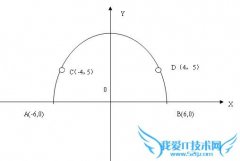 设一元二次方程为y=aX^2+bX+c建立直角坐标系将A,B,D三点代入方程,则:(1)0=ax(-6)^2+bx(-6)+c(2)0=ax6^2+bx6+c(3)5=ax4^2+bx4+c联立(1)(2)(3)解得a=-(1/4)b=...