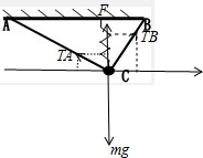问题4:如图所示,一小物体所受的重力为100N,用细线AC、BC和轻弹簧吊起,处于平衡状态.已知弹簧原长为1.5cm,劲度系数k=8000N/m,细线AC长为4cm,∠BAC=30°,∠CBA=60°,求细线AC、BC对小物体的拉力[物理科目]