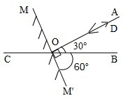 (1)如下图所示,入射光线AO与水平方向成30°角入射,要使反射光线OD原路返回,则此时的入射光线AO必须是垂直射向镜面MM′.