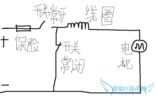 问题4:----(直流电池)------(开关)------(?)-----(电动机)-----|----------------------------------------------------------------------------|就这样一个简单电路,请问在?区放一个什么装置能实现下面功能打开开