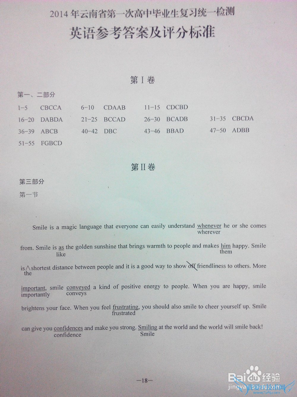 问题4:云南省2014年1月普通高中学业水平测试英语答案