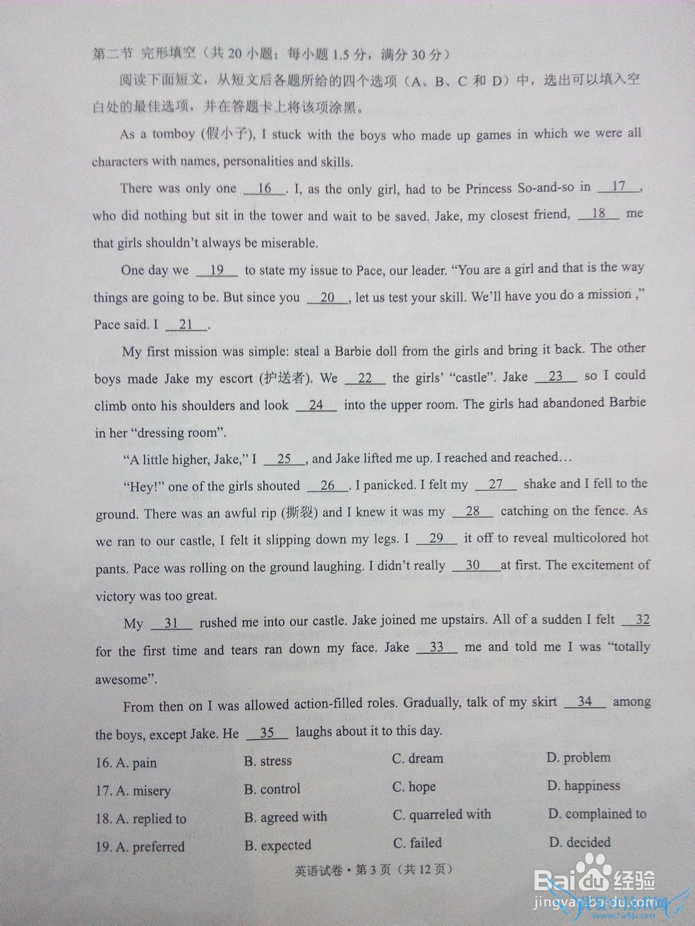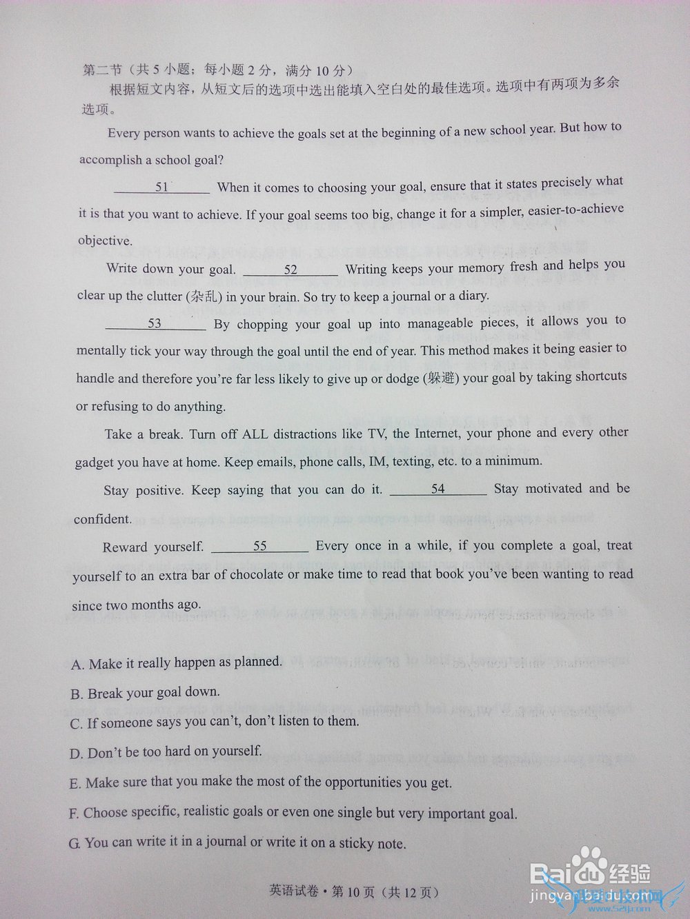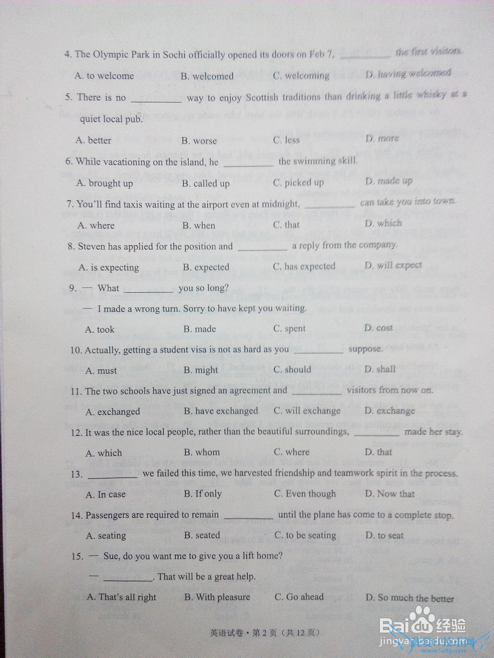 问题2:2014年云南省英语高考题的试卷。