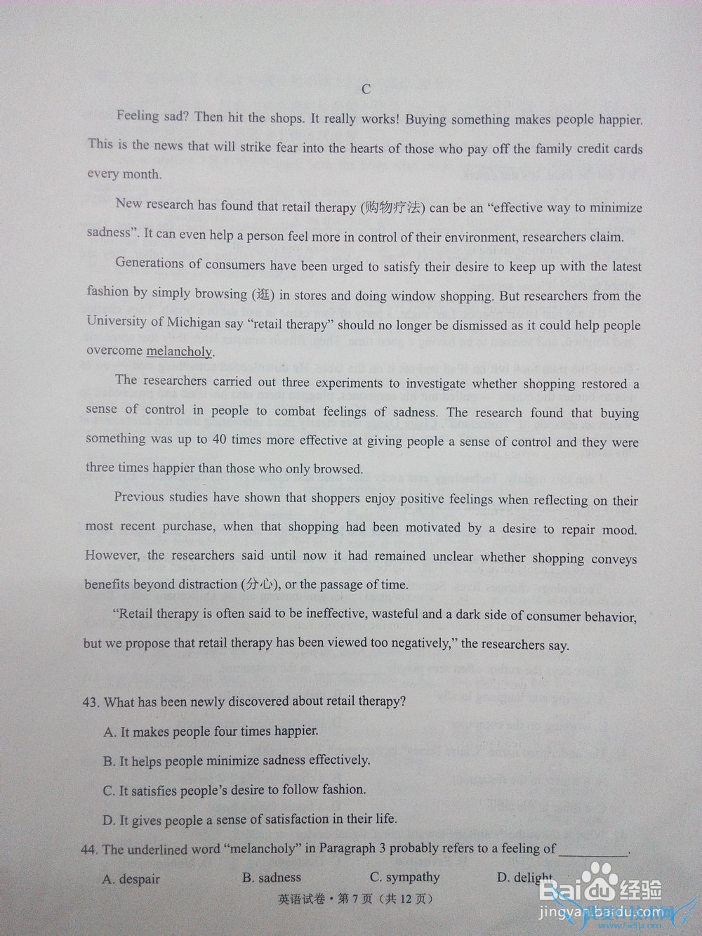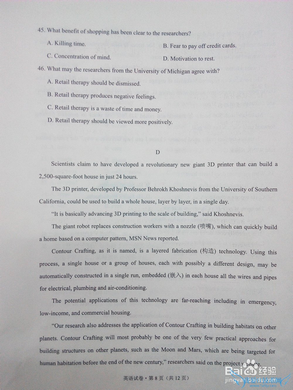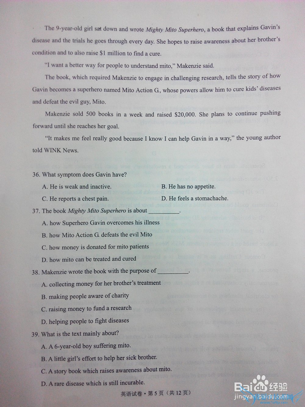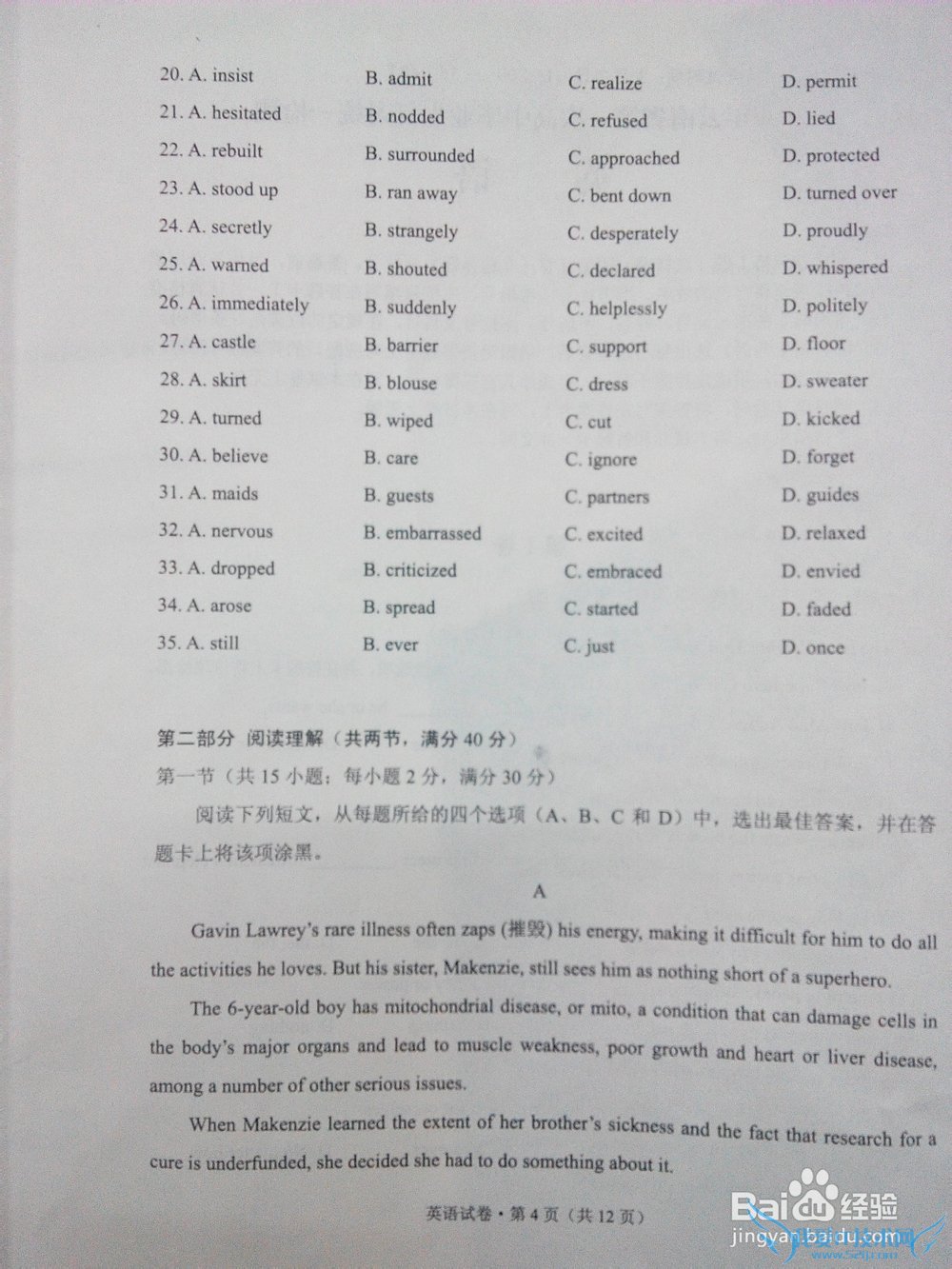 问题2:2014年云南省英语高考题的试卷。