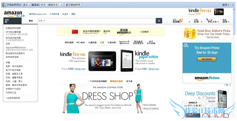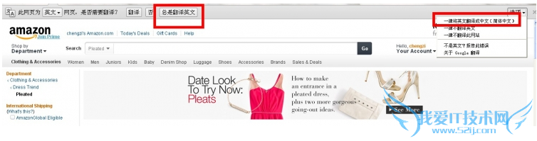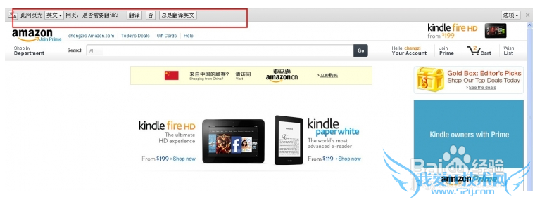 安装完成后,打开谷歌浏览器,我们访问亚马逊会有一个翻译提示: