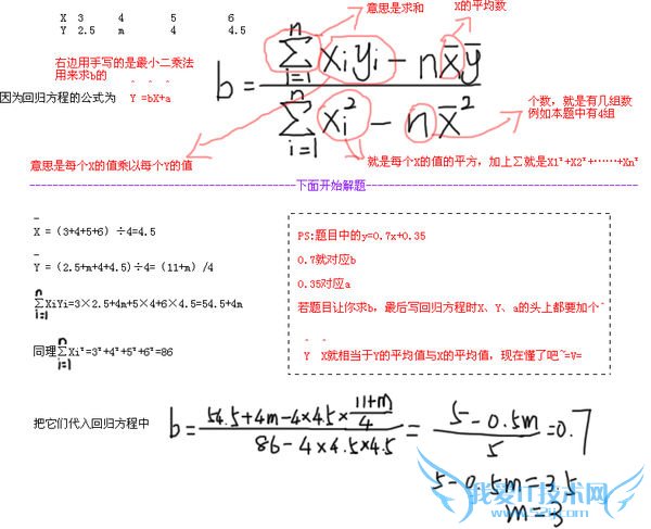 问题3:高中线性回归方程问题X= 3 4 5 6Y=2.5 m 4 4.5根据上述数据 求出线性回归方程为y=0.7x+0.35 那么m的值为什么求详解 PS: 线性回归方程是怎么求的 一般形式是什么 什么方程算是线性回归方程