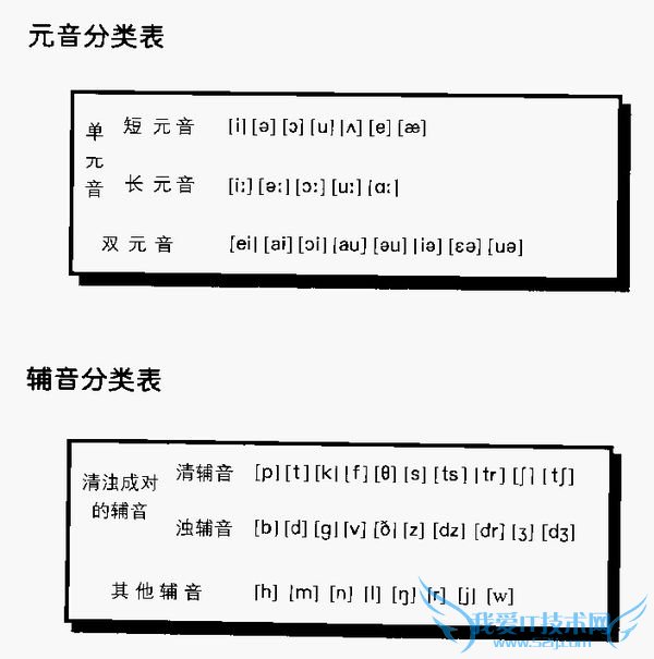 单元音: [e] [ae] [a:] [כ] [כ:] [۸] [3:][ə][i] [i:] [u] [u:] 双元音: [ei] [ai] [כi][əu] [au] [εə] [iə] [uə]