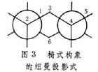 可以看到碳原子1、2、4、5上相连的氢原子都处在全重叠式的位置上.从船式构象的透视式可以看到碳原子3和6(或称船头和船尾碳原子)上的两个向环内伸展的氢原子相距较近.上述两种情况都使氢原子之间产生较大的斥力,从而产生一种使船式构象扭转为椅式构象的内在力量,这种力称为扭转张力.这是船式构象不稳定的根本原因.在椅式构象中,组成碳环的任何相邻的两个碳原子上的氢,彼此都处在交叉式的位置上(图3),