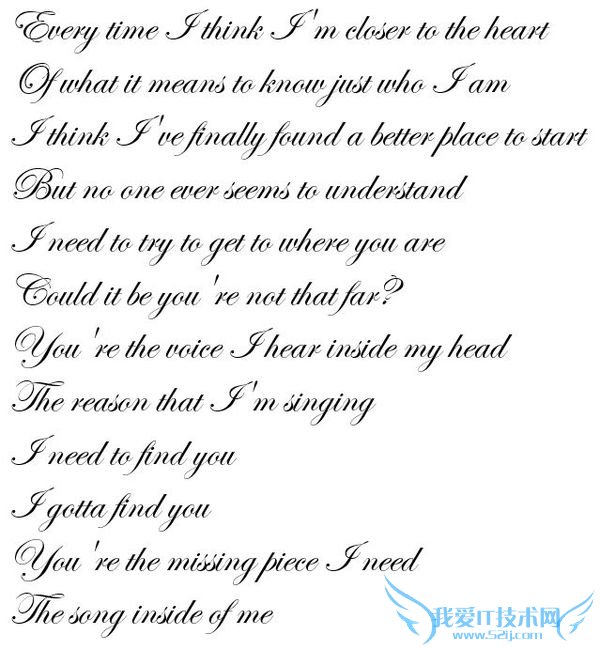 欢迎您访问52IJ教育培训网,今天小编为你分享的高考英语方面的学习知识是通过网络精心收集整理的:“花体字转换器_求帮忙转换英文花体字Every time I think I'm closer...[英语]”,注意:所整理内容不代表本站观点,如你有补充或疑问请在正文下方的评论处发表。下面是详细内容。