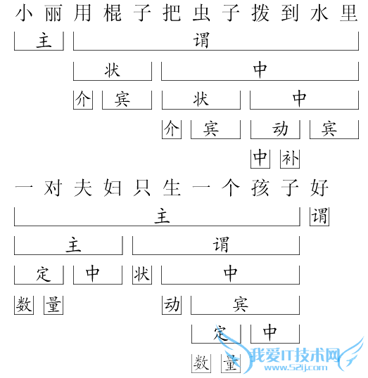 问题5:请大家用层次分析法帮我分析下列句子小丽用棍子把虫子拨到水里 一对夫妇只生一个孩子好当她走进教室的时候树枝被风刮跑了教我们一支新的歌喜欢读巴尔扎克的小说查完病房回到家里躺