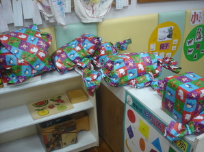 2. 孩子们很愿意尝试包装,对于技术不成熟而将包装纸抓破的人,有部份主动要求再一次机会。