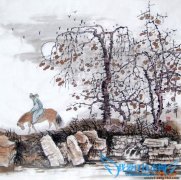 枯藤老树昏鸦,小桥流水人家,古道西风瘦马.夕阳西下,断肠人在天涯.作者:马致远(约1250—1324间)号东篱,大都(今北京)人.年轻时热衷过功名,但仕途并不得意,后隐居杭...