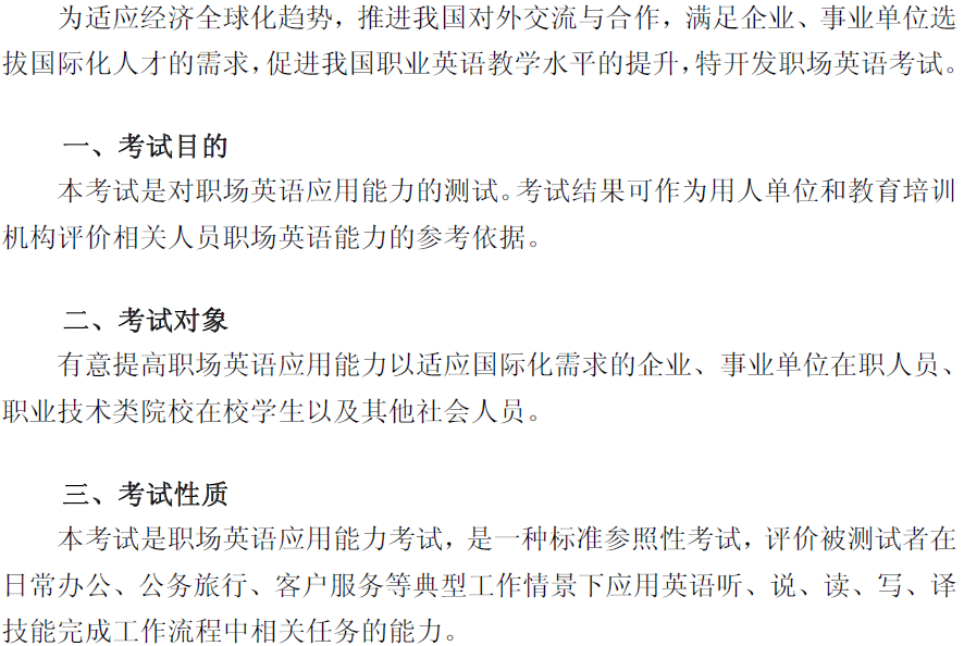 全国职场英语及考试等级介绍