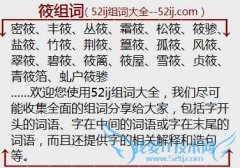 组词大全详解[筱组词]如:密筱、丰筱、丛筱、霜筱、松筱、筱骖、盐筱、竹筱、荆筱、篁筱、孤筱、风筱、翠筱、碧筱、筱篱、筱屋、雪筱、贞筱、青筱箔、虬户筱骖 另外...