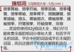 组词大全详解[揎组词]如:揎拳舞袖、揎拳捋袖、揎拳拢袖、揎拳裸臂、揎拳裸袖、揎拳裸手、揎腕攘臂、揎拳掳袖、揎头、裸袖揎衣、裸袖揎拳、掳袖揎拳、捋臂揎拳、捋袖...