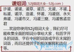 组词大全详解[谖组词]如:诈谖、谖谖、谖草、谖言、无谖、不谖、私谖、谖浮、造谖、怀谖、冯谖剑、永矢弗谖、冯谖市义、冯谖三窟、冯谖客孟尝君 另外还讲解谖的组词...