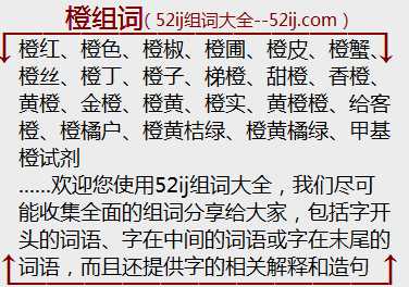 ¡¡¡¡¡¾¾«Ñ¡×é´ÊÁÐ±í¡¿£º³Èºì¡¢³ÈÉ«¡¢³È½·¡¢³ÈÆÔ¡¢³ÈƤ¡¢³Èз¡¢³ÈË¿¡¢³È¶¡¡¢³È×Ó¡¢Ìݳȡ¢Ìð³È¡¢Ïã³È¡¢»Æ³È¡¢½ð³È¡¢³È»Æ¡¢³Èʵ¡¢»Æ³È³È¡¢¸ø¿Í³È¡¢³ÈéÙ»§¡¢³È»Æ½ÛÂÌ¡¢³È»ÆéÙÂÌ¡¢¼×»ù³ÈÊÔ¼Á