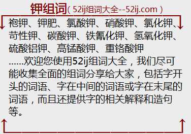 尊敬的读者:您正在阅读的是52ij组词大全分享的:钾组词,感谢您访问52ij组词大全。