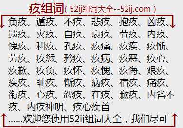 四、疚组词的发散思维组词法(分别以疚字开头、疚字在中间和疚字在结尾的组词)