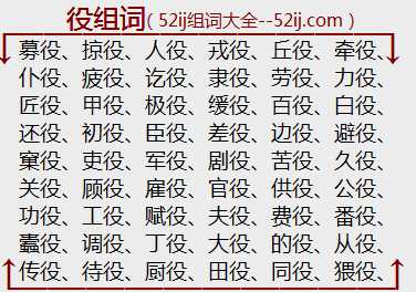 图片是役组词的拍照。(52ij组词大全提供)
