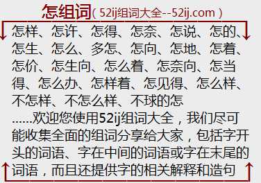 尊敬的读者:您正在阅读的是52ij组词大全分享的:怎组词,感谢您访问52ij组词大全。