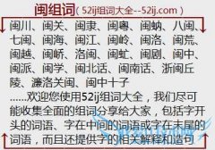 组词大全详解[闽组词]如:闽川、闽关、闽隶、闽粤、闽蚋、八闽、七闽、闽海、闽江、闽岭、闽洛、闽荒、闽越、闽峤、洛闽、闽虻、闽剧、闽中、闽派、闽学、闽北话、闽...