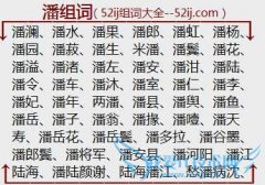 组词大全详解[潘组词]如:潘澜、潘水、潘果、潘郎、潘虹、潘杨、潘园、潘菽、潘生、米潘、潘鬓、潘花、潘溢、潘渚、潘左、潘安、潘泔、潘陆、潘令、潘车、潘沐、潘室...