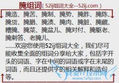 组词大全详解[腌组词]如:腌造、腌苦、腌制、腌势、腌胙、腌陈、腌货、腌腊、腌渍、腌肉、腌脏、腌藏、糟腌、腌菜、腌盆儿、腌对付、腌躯老、腌剌答、老腌儿、 另外...