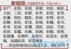 组词大全详解[彭组词]如:彭尸、彭勃、彭祖、彭蜞、老彭、韩彭、大彭、三彭、彭郎、彭考、彭湃、彭亨、彭濞、容彭、黥彭、彭侯、彭铿、彭月、彭聃、彭彭、彭泽、彭殇...